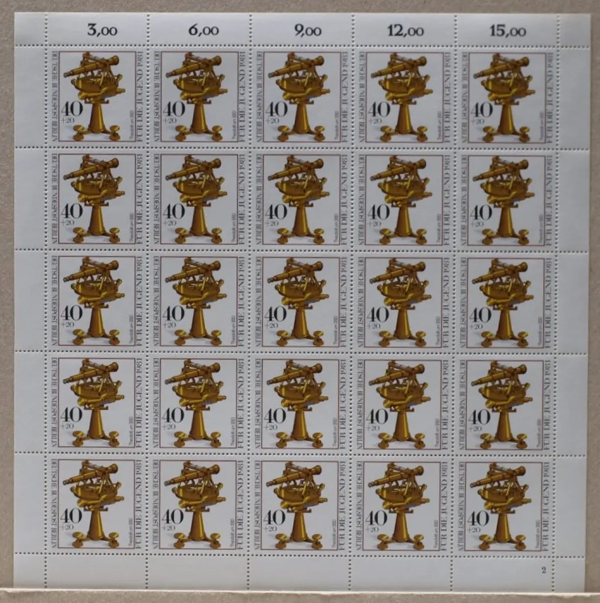 Kompletter Bogen, ungefaltet und nicht angetrennt. Die Abbildung ist exemplarisch!