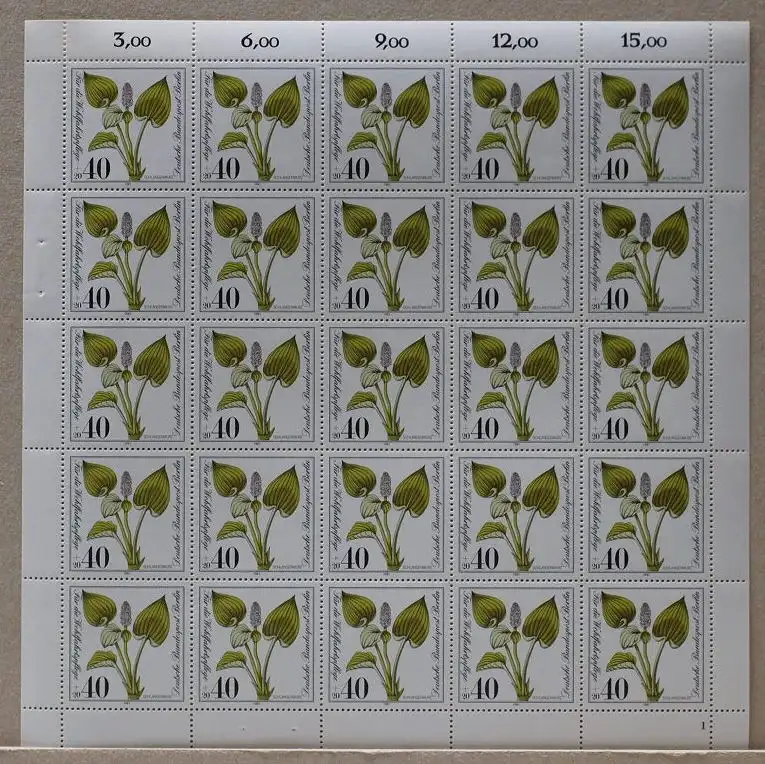 Kompletter Bogen, ungefaltet und nicht angetrennt. Die Abbildung ist exemplarisch!