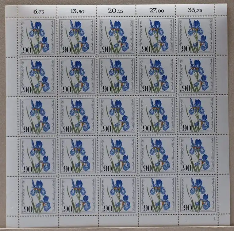 Kompletter Bogen, ungefaltet und nicht angetrennt. Die Abbildung ist exemplarisch!