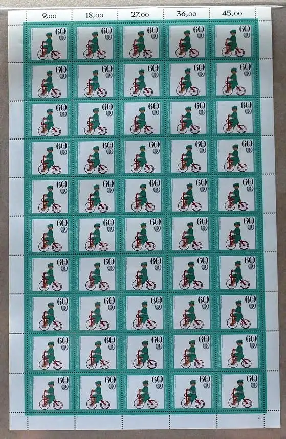 Kompletter Bogen, ungefaltet und nicht angetrennt. Der Bogen hat am Oberrand eine leichte Verfärbung!