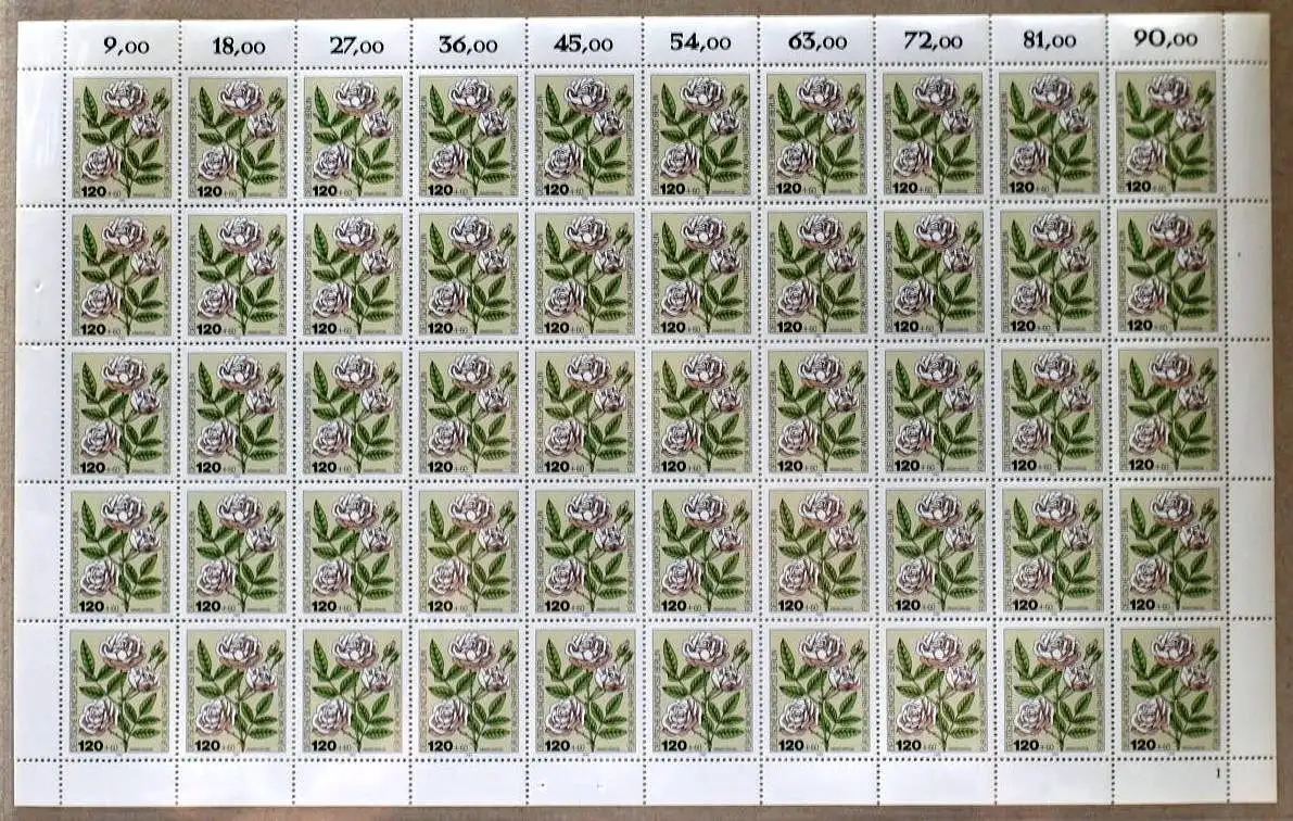 Kompletter Bogen, ungefaltet und nicht angetrennt. Der Bogen hat am rechten Rand eine leichte Verfärbung! Die Abbildung ist exemplarisch!