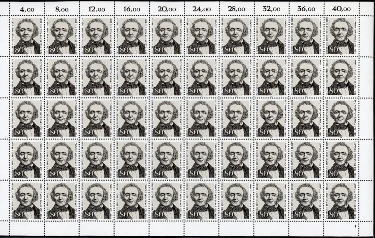 Kompletter Bogen, ungefaltet und nicht angetrennt. Die Abbildung ist exemplarisch!