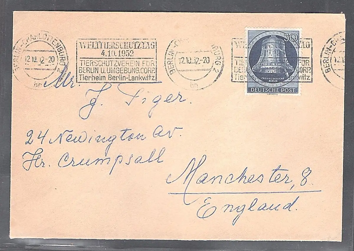 Berlin Auslandbrief mit EF. Mi.-Nr. 85 nach England.
