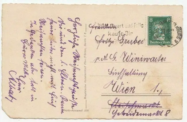 Bln., Max O`Brian o. J. [ca. 1910]. Farb. 9 x 14 cm. Rechte untere Ecke m. kl. Fehlstelle.