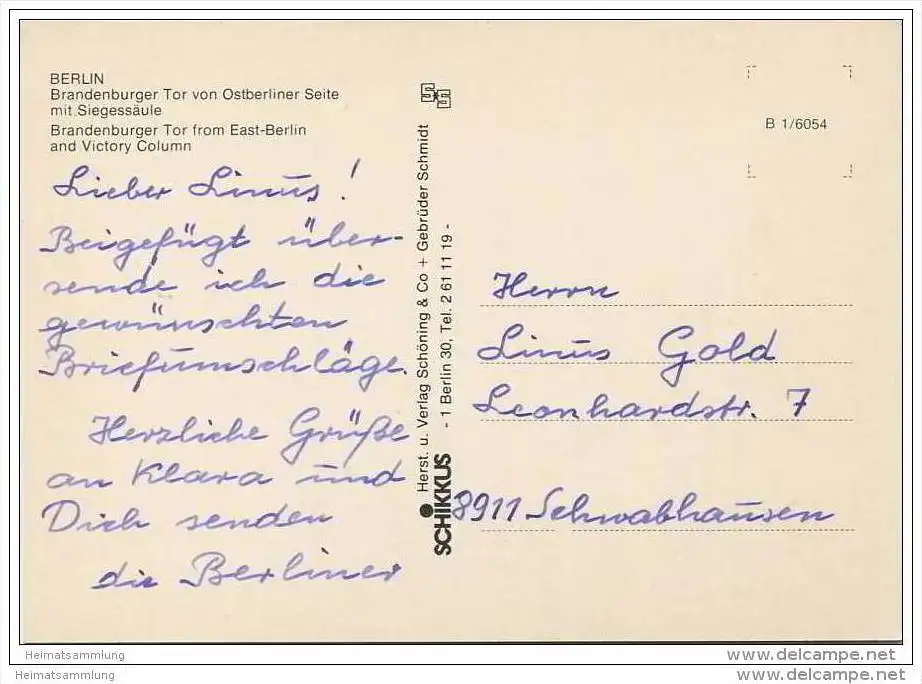 Berlin - Brandenburger Tor von Ostberliner Seite - AK Grossformat - Verlag Schöning & Co. + Gebrüder Schmidt Berlin - Rückseite beschrieben (G25692)
