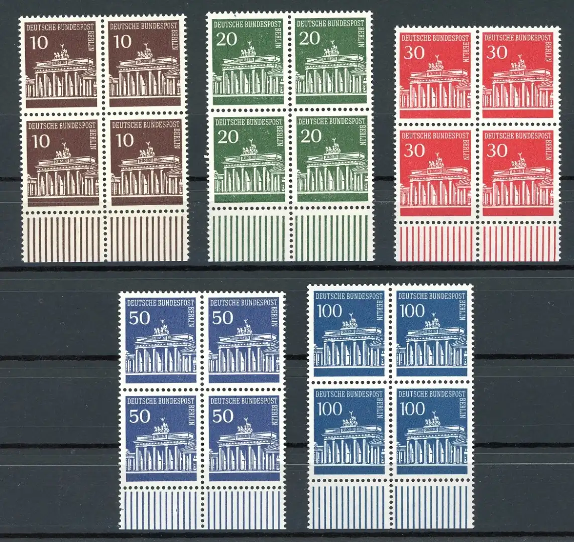 Berlin DS Brandenburger Tor 286-290 postfrisch 4er Blöcke Unterrand #JJ772