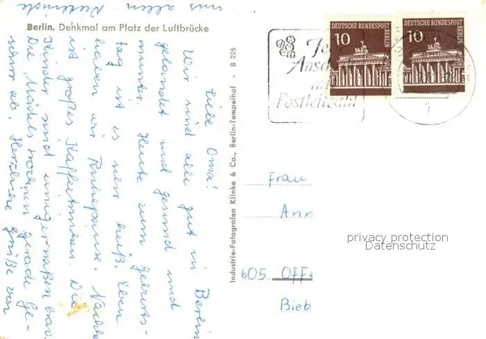 Berlin Denkmal am Platz der Luftbruecke Berlin postalisch gelaufen nach 1965 Erhaltung siehe scans [WerneD78] WernPID7