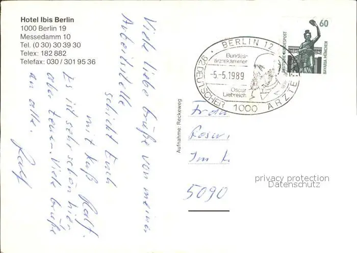 Berlin Hotel Ibis Berlin postalisch gelaufen 1989 Erhaltung siehe scans Alte Ansichtskarte Postkarte NataID47