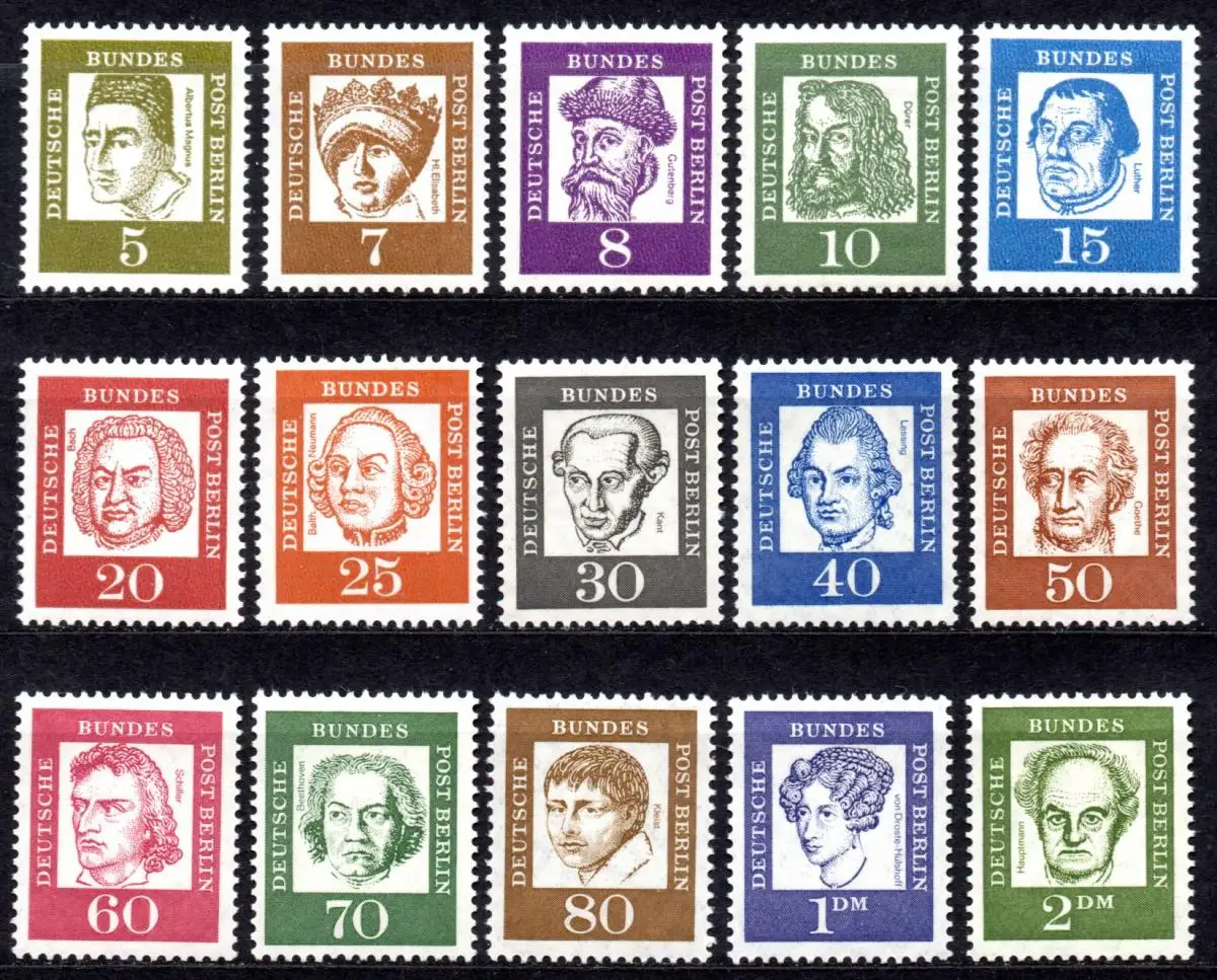 Berlin, Mi-Nr. 199 - 213 **, kompl., Bedeutende Deutsche