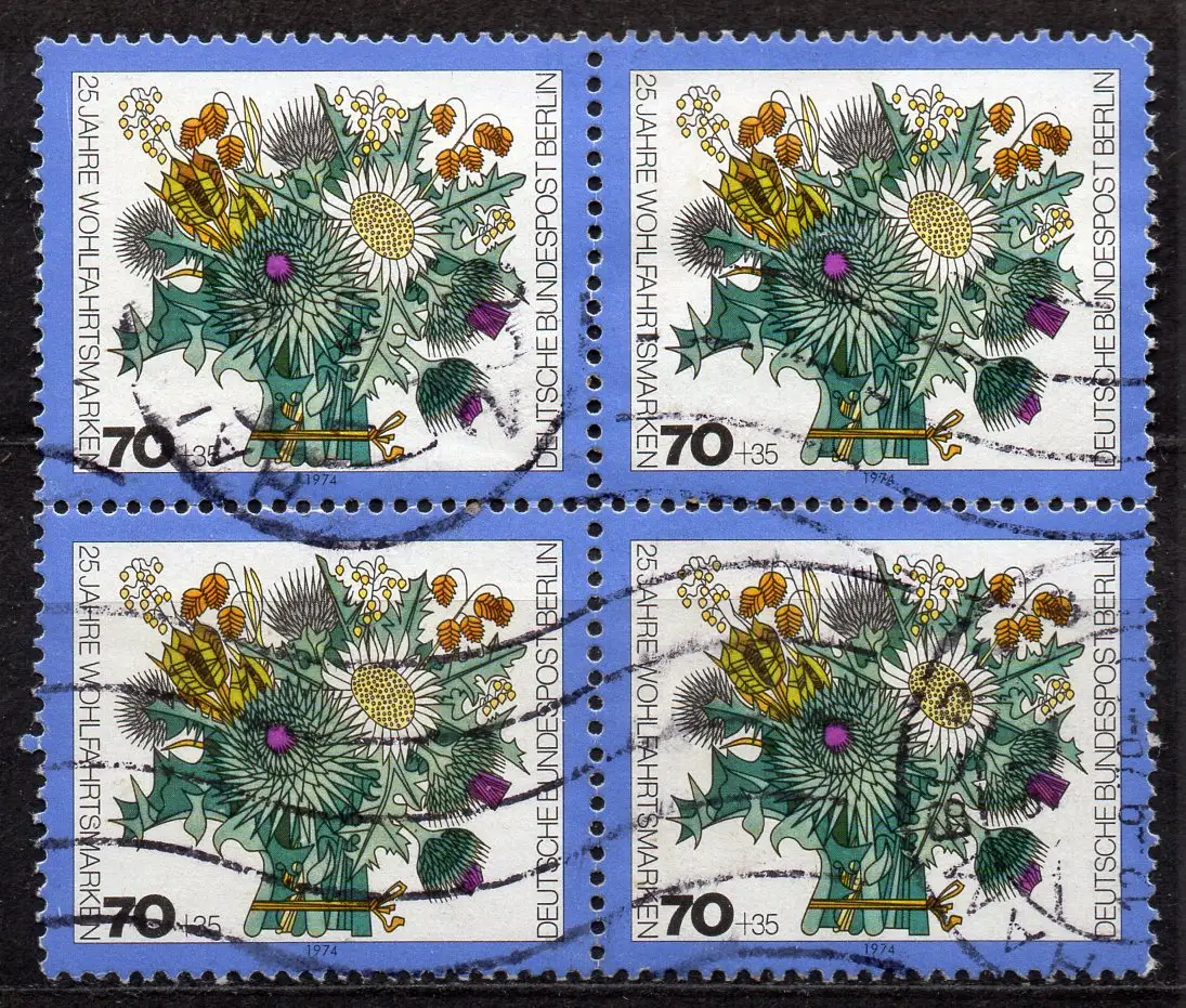 Berlin, Mi-Nr. 476 gest., 4´er-Block, Wohlfahrt 1974: Blumensträuße