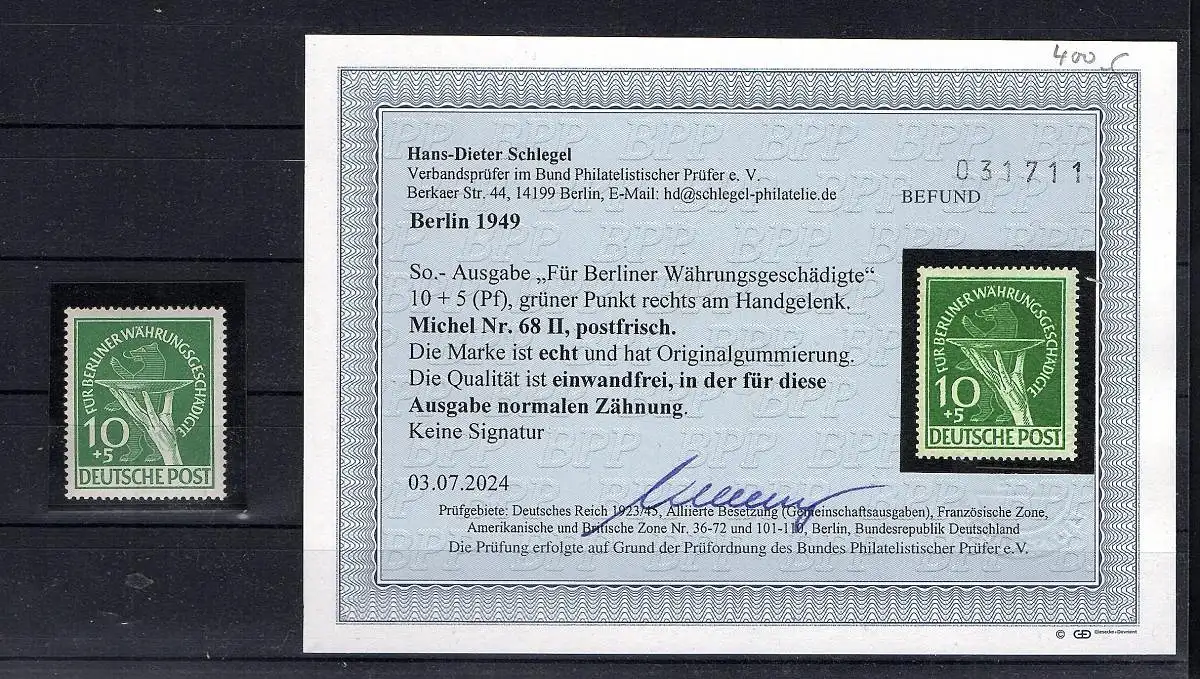 Berlin, Mi.-Nr. 68 II, Befund SchlegelBPP.