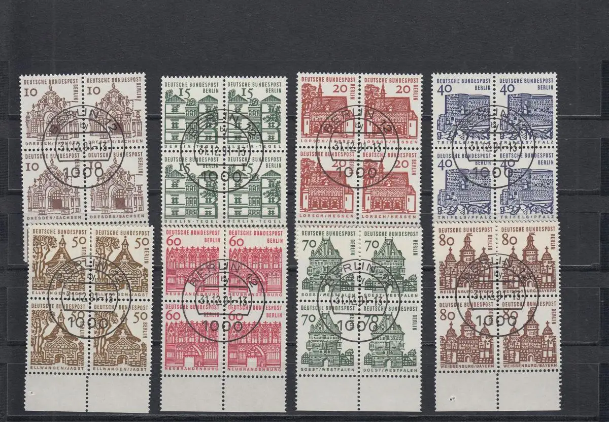 Berlin: MiNr. 242-49, gestempelt im Viererblock Berlin 12