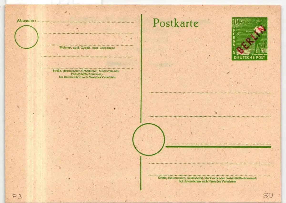 Berlin P 3 als Ganzsache ungebraucht #JG135