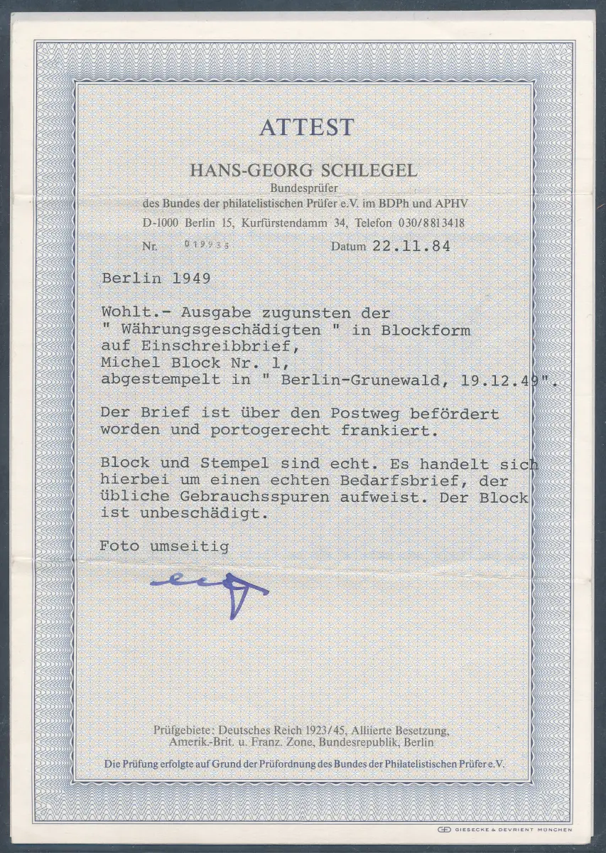 Ein Angebot in Briefmarken Berlin 1948-1949 - 2.469 weitere Angebote in dieser Kategorie
