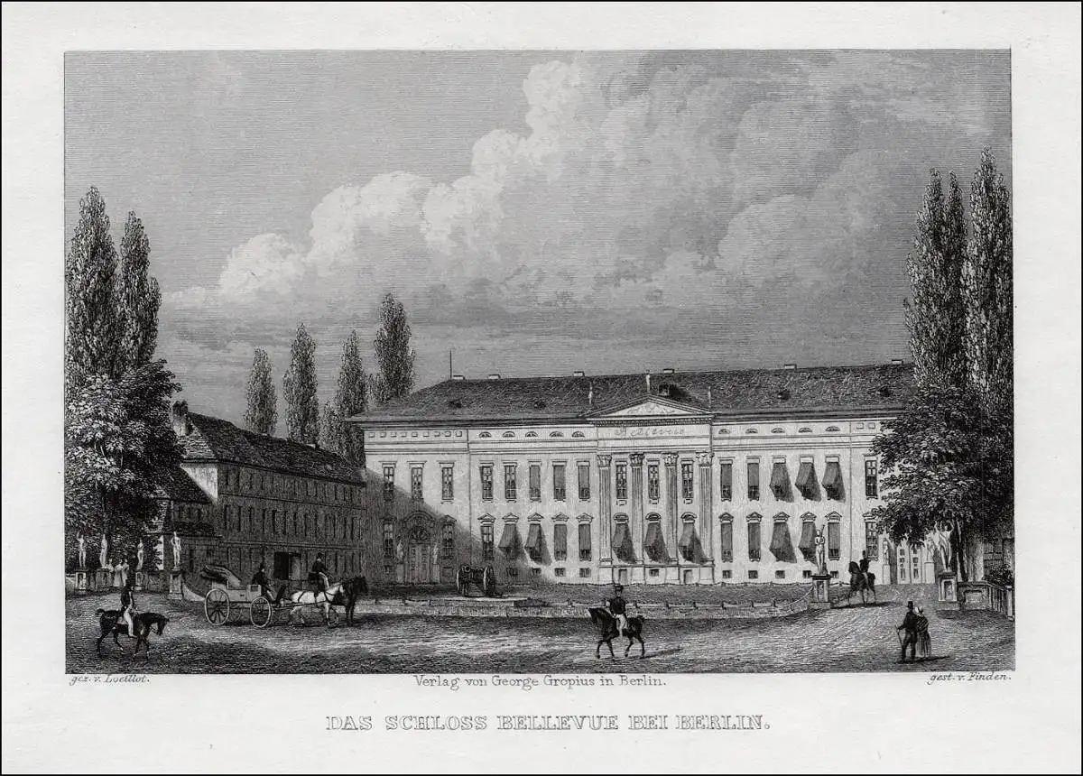 Berlin: Schloss Bellevue. Originaler Stahlstich 1833