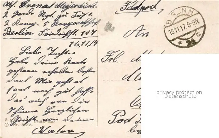 Berlin Sieges Allee Berlin postalisch gelaufen 1917 Feldpost Erhaltung siehe scans [WerneD78] Feldpost WernPID7