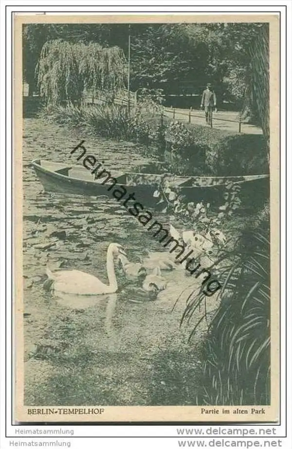 Berlin-Tempelhof - Partie im alten Park - Verlag J. Goldiner Berlin 20er Jahre - rückseitig Klebepunkte (G26178) *