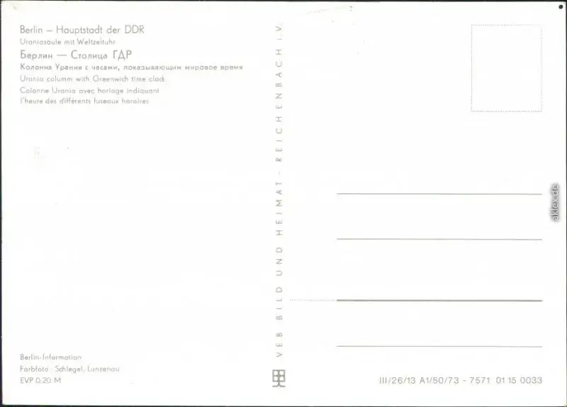Berlin Uraniasäule und Weltzeituhr - belebt - Alexanderplatz 1973