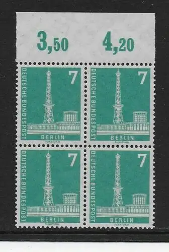 Berlin: Viererblock vom Oberrand MiNr. 135 wv, postfrisch, **