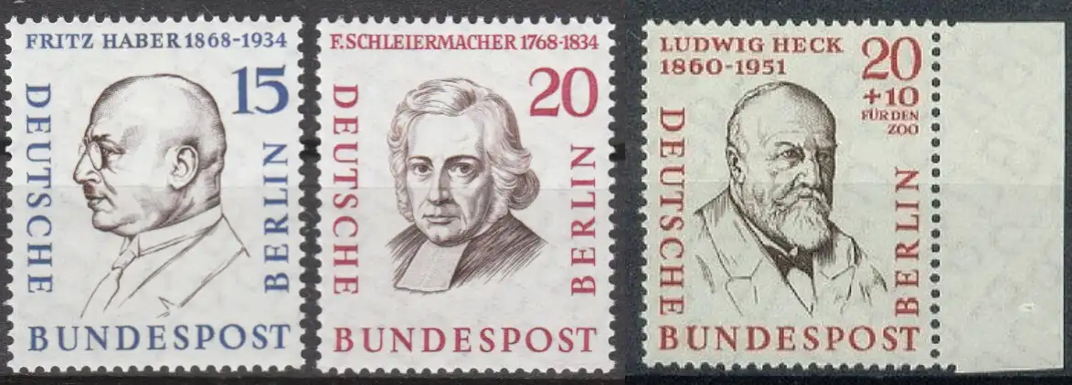 Männer aus der Geschichte Berlins (II): Fritz Haber (1868-1934), Chemiker, Nobelpreis 1918 / Friedrich Daniel Ernst Schleiermacher (1768-1834), evang. Theologe und Philosoph / Prof. Ludwig Heck (1860-1951), Zoologe