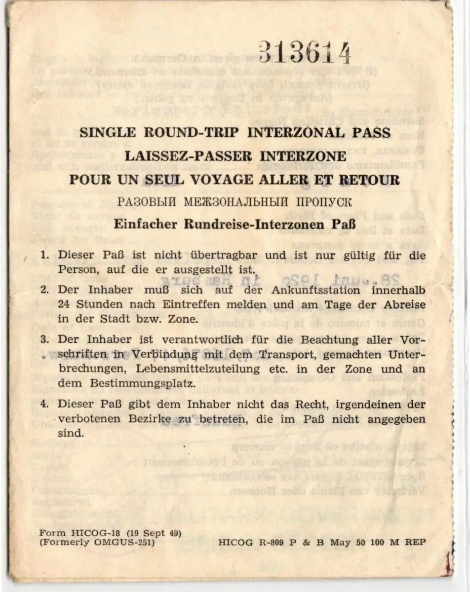 Einfacher Rundreise-Interzonen Pass zur Abholung von Sperrgut aus Hamburg. Ausgestellt in Berlin