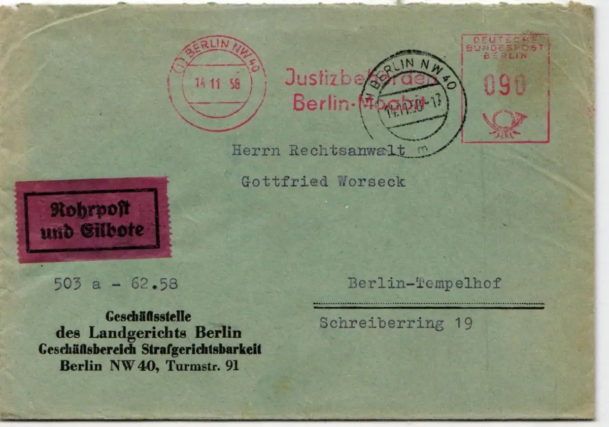 Berlin auf Brief Freistempler mit Rohrpost gelaufen #KD219