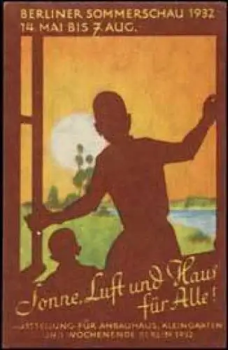 Sonne, Luft und Haus für Alle. Ausstellung für Anbauhaus, Kleingarten und Wochenende, Größe/Zustand: 6x4 , guter Zustand, Original alte Reklamemarke die seinerzeit für die Werbung benutzt wurde