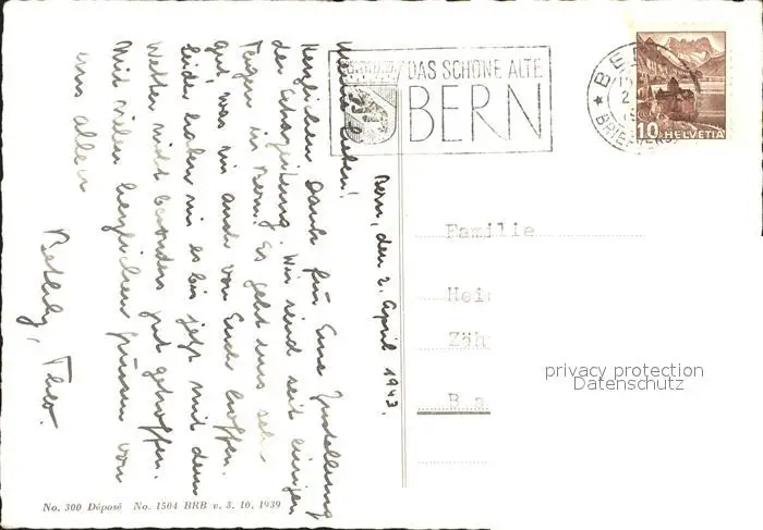 Bern BE Roeseligarten Bern postalisch gelaufen 1943 Erhaltung siehe scans Alte Ansichtskarte Postkarte Paoletti