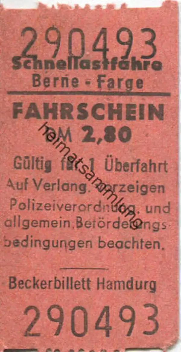 Berne Farge - Schnellastfähre - Fahrschein DM 2,80