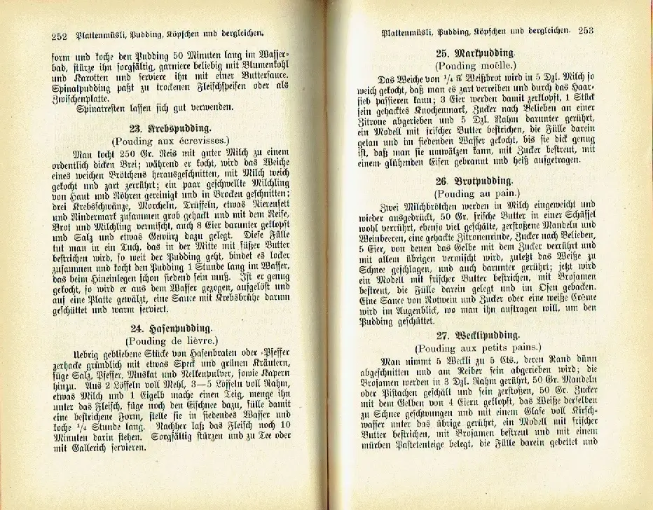 guter Zustand, Gebrauchs- und Alterungsspuren: Einbandecken gering abgenutzt - Papier teils etwas vergilbt, aber Seiten sauber und ordentlich, selten gering stockfleckig - 2-3 Eselsohren - Vorsätze teils etwas stockfleckig, 19., unveränderte Auflage der 18. (Luxus-) Ausgabe (1910) des Kochbuches, welches erstmalig 1834/5 erschien - Einfache Küche - Suppen - Fleisch - Geflügel und Fische - Saucen und Salate - Grüne Gemüse - Brei- und Mehlspeisen - Obst - Gute Küche - Suppen - Fleisch - Wildpret und Geflügel - Fische - Saucen und Salate - Mehl- und Eierspeisen - Grüne Gemüse und Obst - Schwämme (Pilze) - Gemüse und Obstspeisen - Plattenmüsli, Pudding, Köpfchen und dergleichen - Pasteten - Kuchen und Torten - Zucker- und Teigwerk - Gemüse- und Fruchtkonserven - Gefrorenes - Warme und kalte Getränke - Anhang - Wichtige Eigenschaften von Lebensmitteln, Brennmaterial, Feuerungsanlagen und Kochgeschirr - Einkauf und Aufbewahrung - Speisezettel (Speiseplan, Menü) - Vegetarischer Speisezettel - u. a, Leinen, ca. 13 x 19,5, 468 Seiten mit zahlreichen Bildern