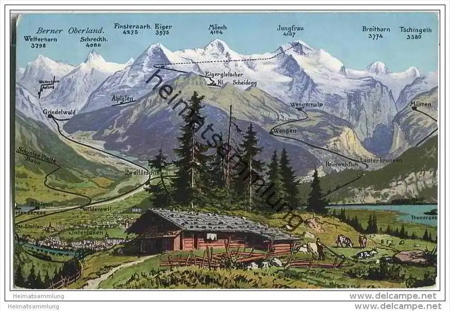 Berner Oberland - Panoramakarte (G26398) gel. 1912