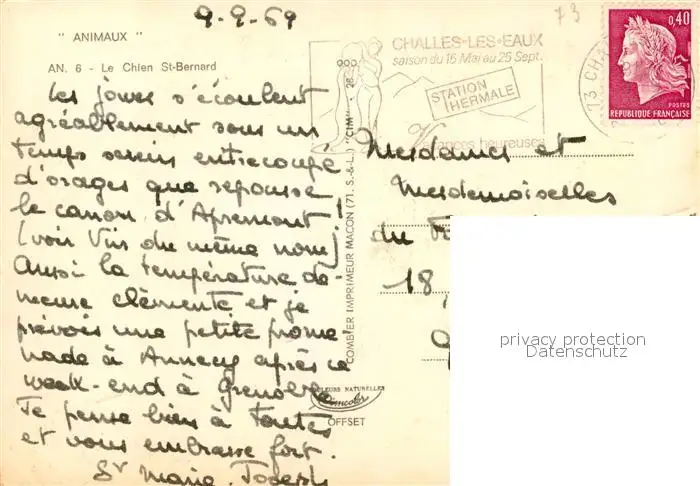 Bernhardiner Chien St-Bernard postalisch gelaufen 1969 Erhaltung siehe scans [PaolaD17] PaolPID1