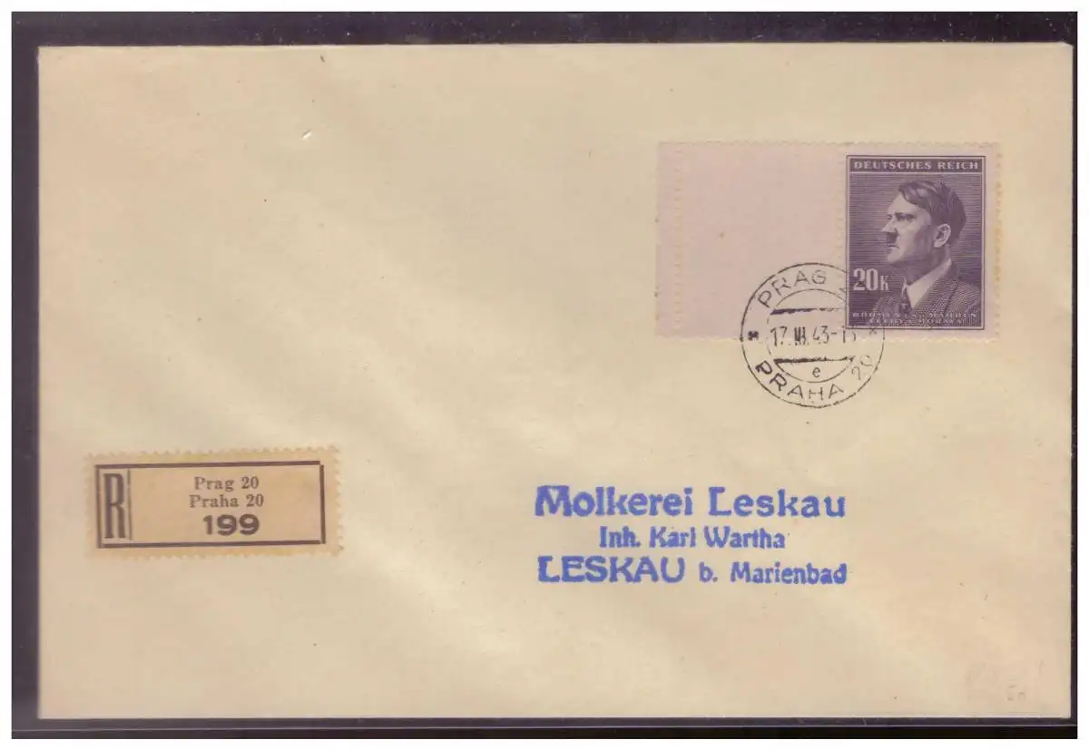 BM (009072) Beleg MNR 108 mit Leerfeld gestempelt Prag 17.3.1943