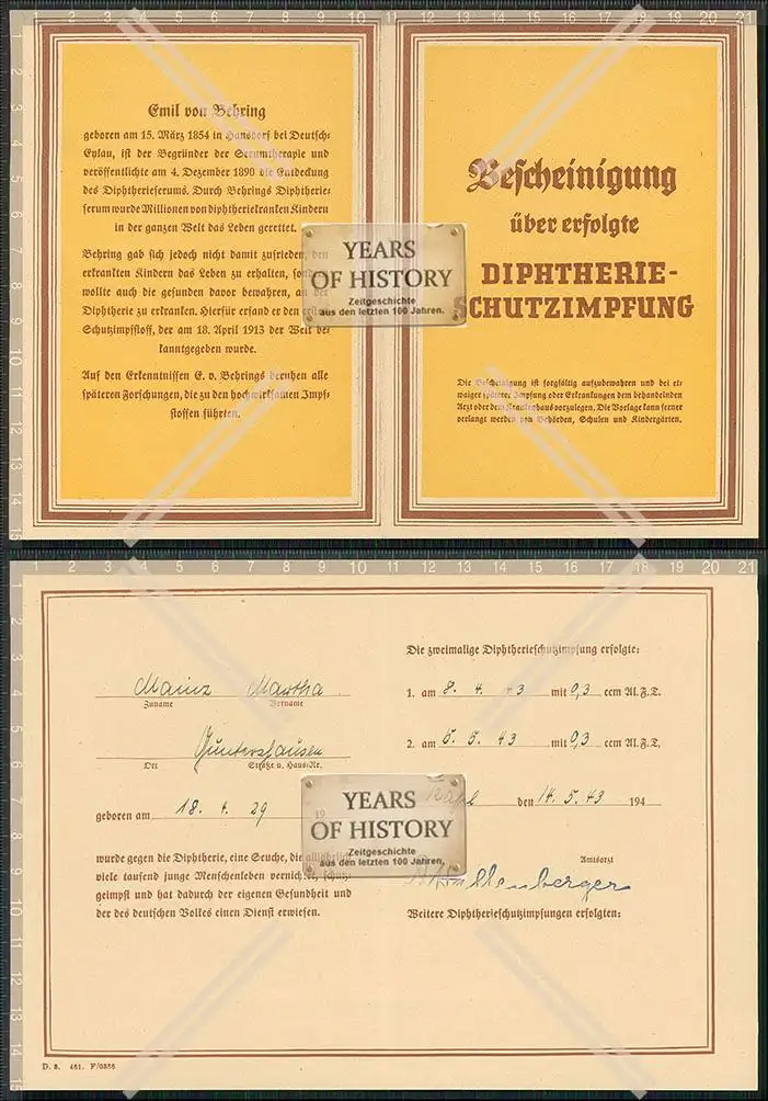 Bescheinigung über erfolgte Diphtherie-Schutzimpfung 1943 M2024-05-02-333Bescheinigung über erfolgte Diphtherie-Schutzimpfung 1943