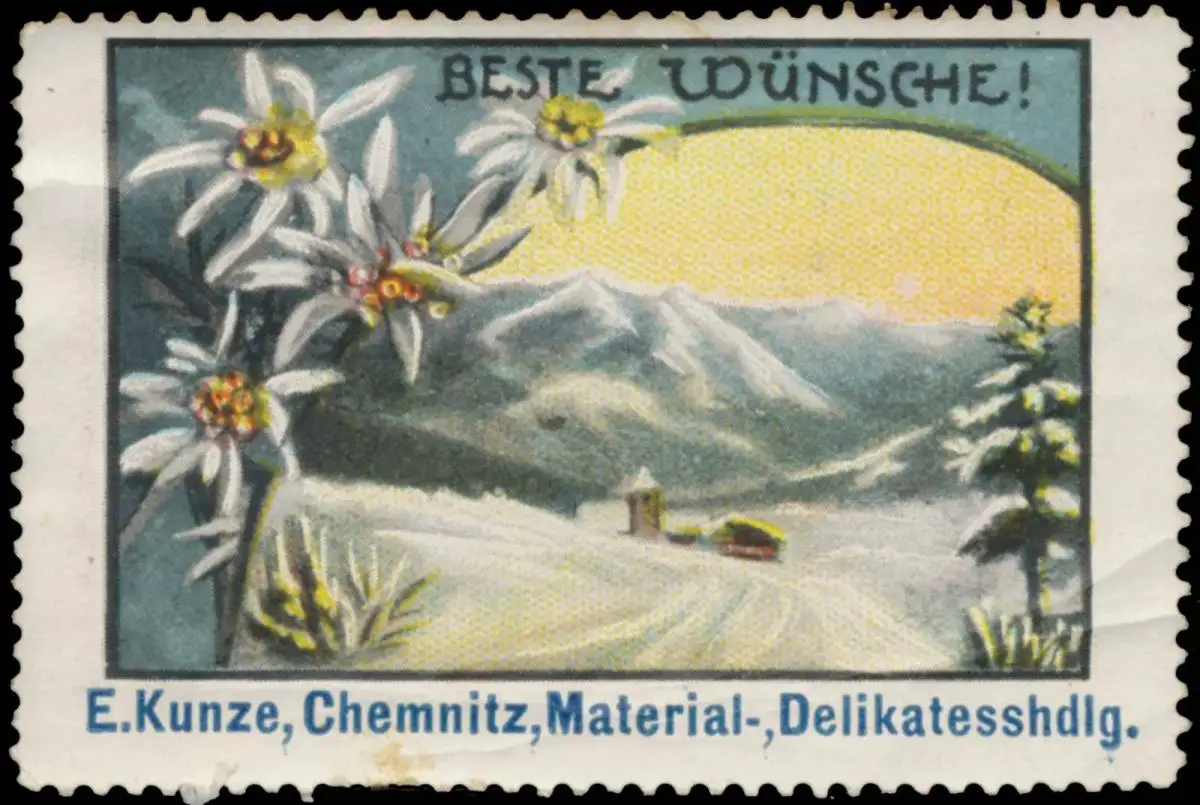 Silvester, Material-, Delikatessenhandlung, Größe/Zustand: 4x6 , leicht geknickt, Original alte Reklamemarke die seinerzeit für die Werbung benutzt wurde