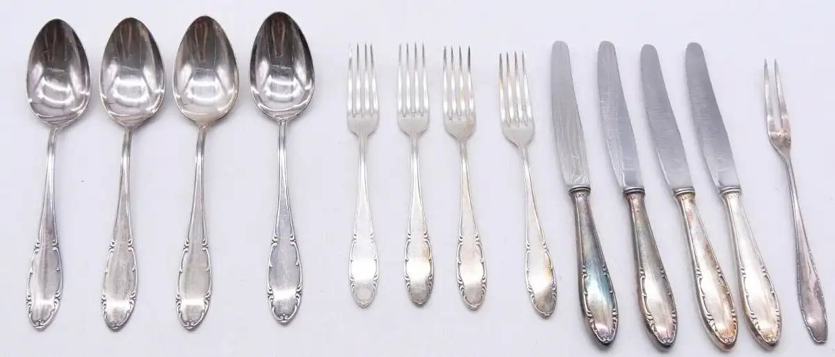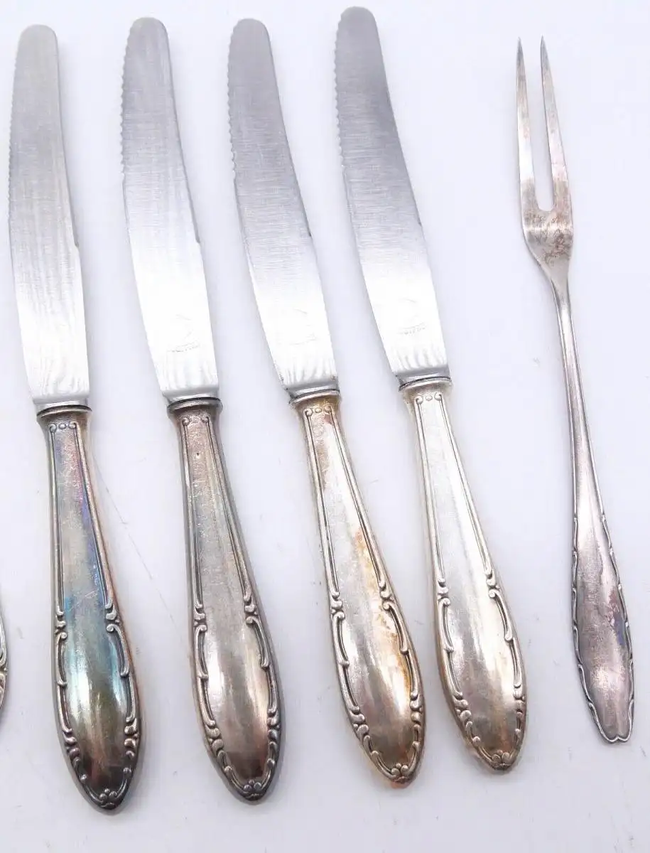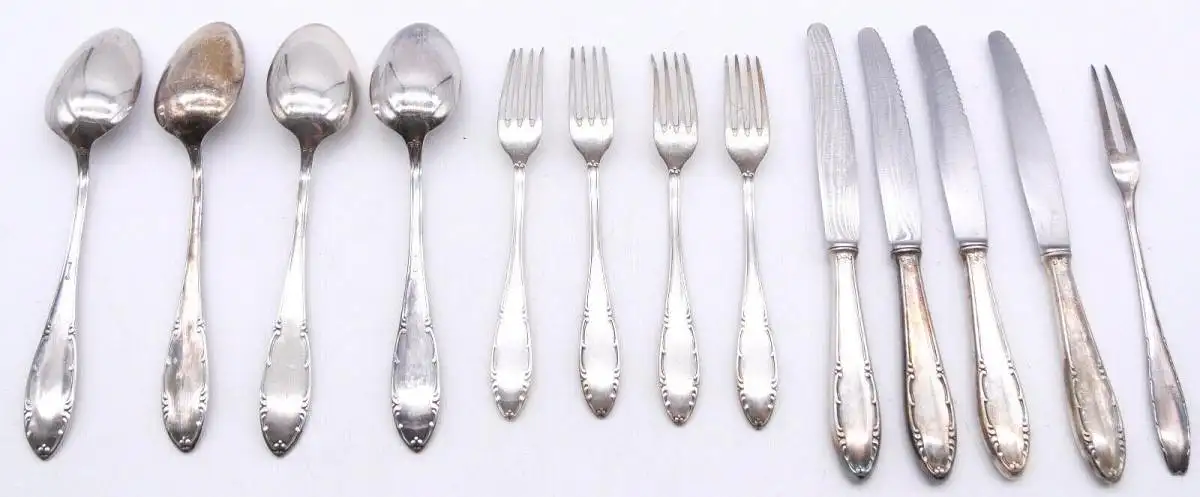 Das Besteck ist im guten gebrauchten Zustand mit Gebrauchsspuren und Verschmutzungen, siehe Fotos.Bitte schauen Sie sich die Fotos zum Zustand der Artikel an, da diese Bestandteil der Beschreibung sind. Die Besteckteile wurden nicht geputzt, geschönt oder gereinigt.