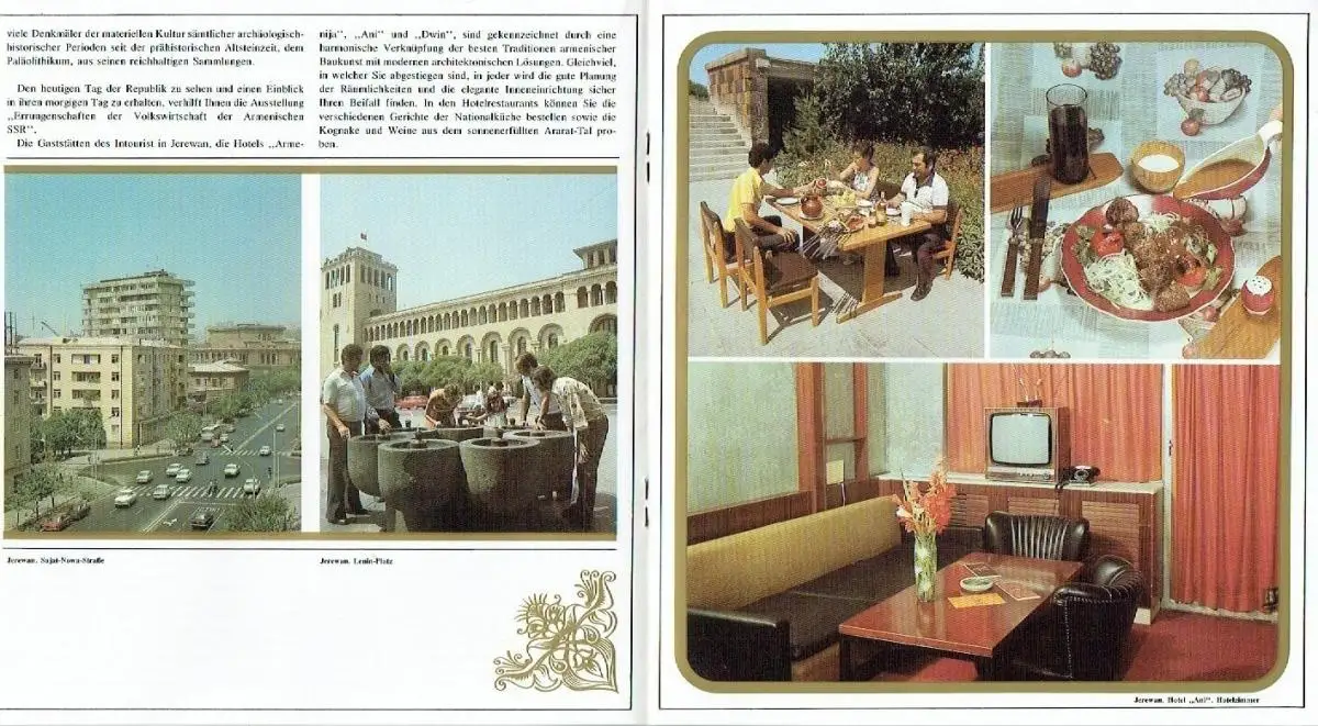 sehr guter Zustand, geringe Gebrauchs- und Alterungsspuren, Werbe-Prospekt mit Beschreibung und Informationen zu Armenien, Jerewan und dem "Land der Steine", Papier, ca. 18,5 x 20, 16 Seiten mit 17 Bildern
