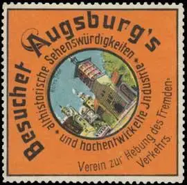 Augsburgs althistorische Sehenswürdigkeiten und hochentwickelte Industrie, Rotes Tor, Größe/Zustand: 4x5 , guter Zustand, Original alte Reklamemarke die seinerzeit für die Werbung benutzt wurde