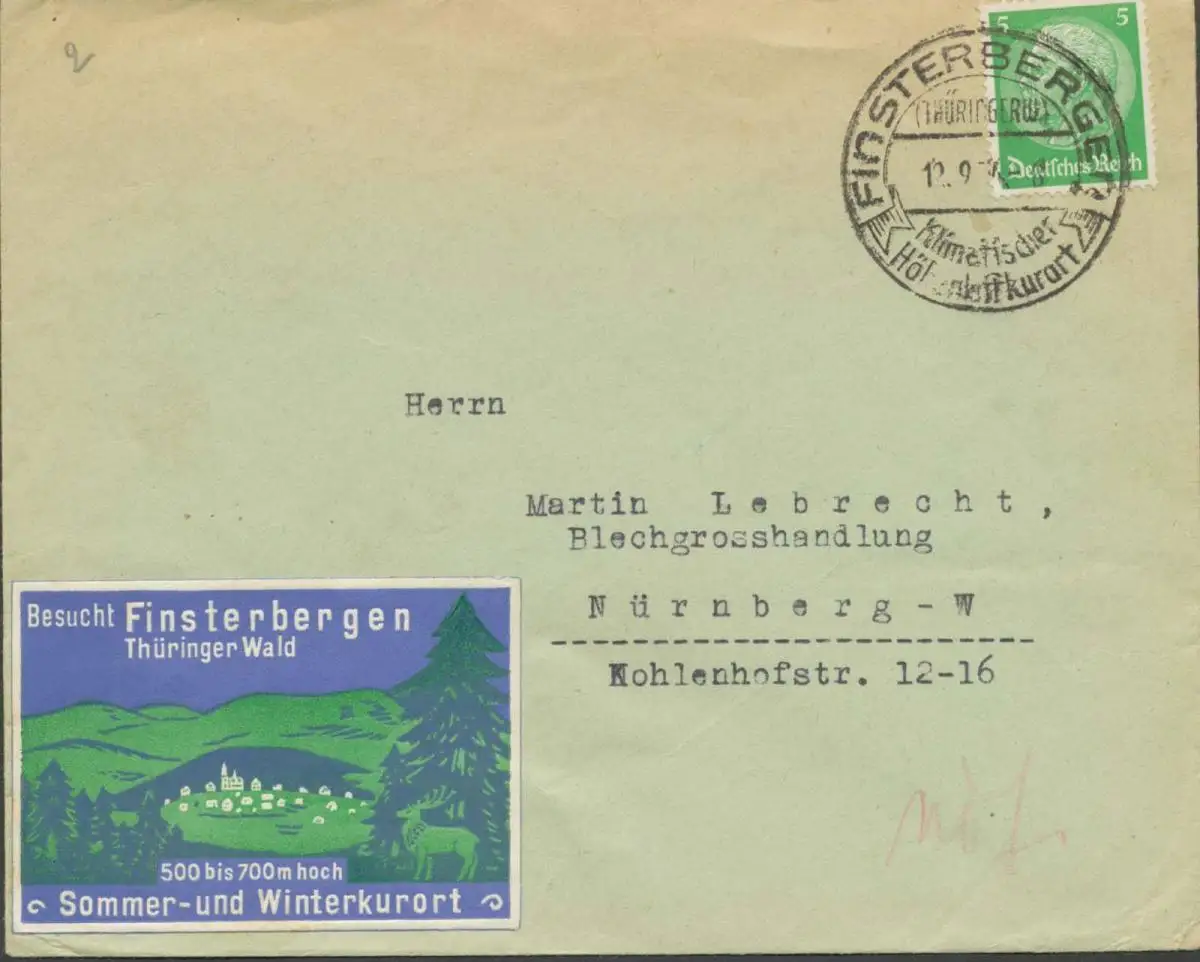 Briefumschlag mit aufgeklebter Reklamemarke, Größe/Zustand: , guter Zustand, Original alte Reklamemarke die seinerzeit für die Werbung benutzt wurde