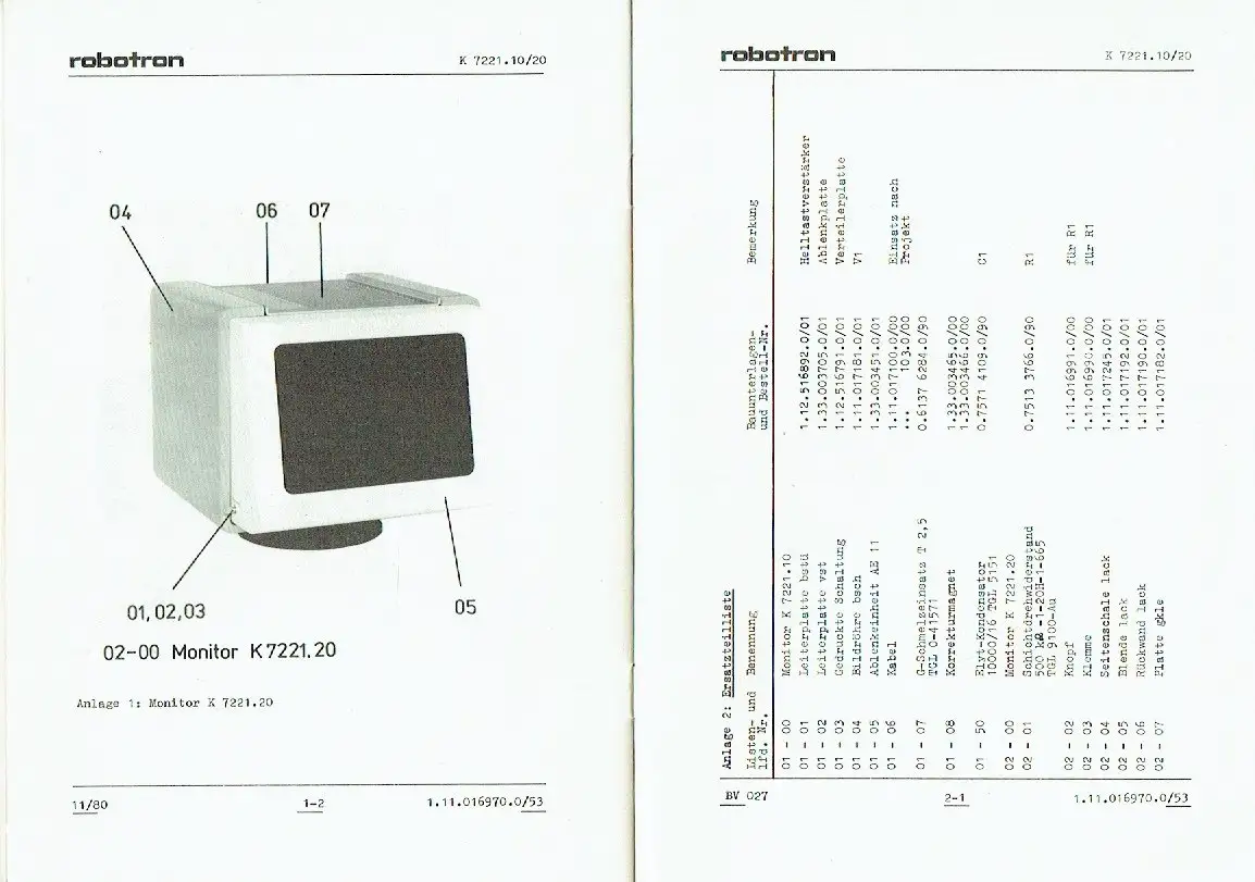 Betriebsvorschrift Monitor K 7221.10 / K 7221.20 Betriebsdokumentation, 1.11.016970.0/97.