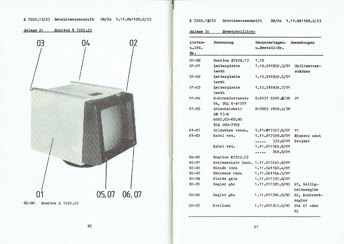 Titel: Betriebsvorschrift Monitor K 7222.13/23