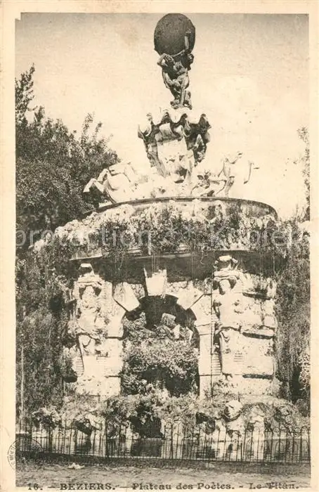 Beziers Plateau des Poètes le Titan Beziers postalisch gelaufen bis 1920 Erhaltung siehe scans [FriedD77] Frierer