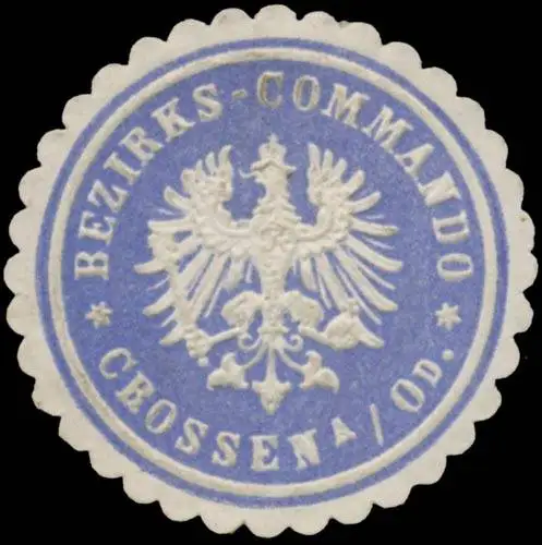 Bezirks-Commando, blau, weiß, geprägt, Größe/Zustand: 4 , fleckig, Original Verschluss-Siegelmarke aus Papier welche früher von Behörden, Firmen etc. zum Versiegeln der Briefe benutzt wurden