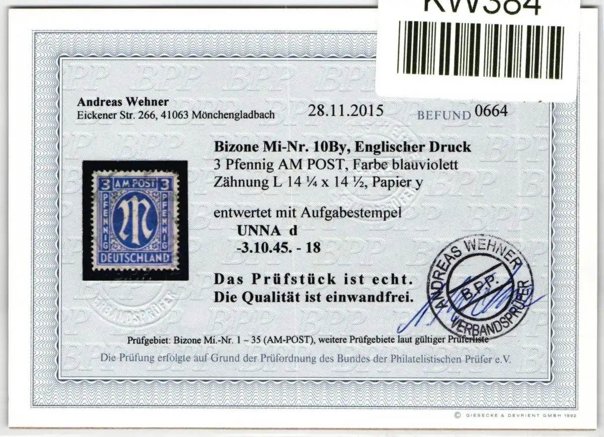 Bi-Zone 10 By gestempelt Befund Wehner BPP #KW384