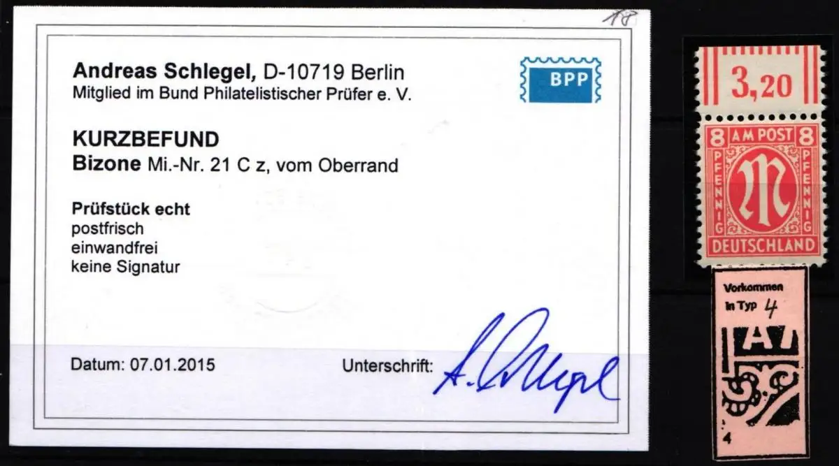 Bi-Zone 21 Cz postfrisch Kurzbefund Schlegel BPP #KW388
