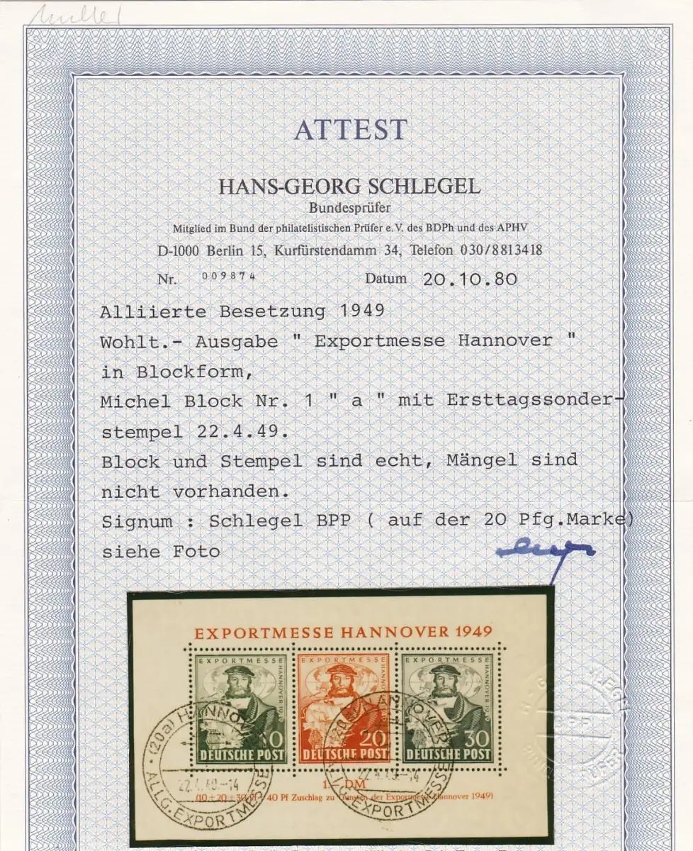 BiZone: Block 1a, Ersttag-Sonderstempel, mit BPP Attest