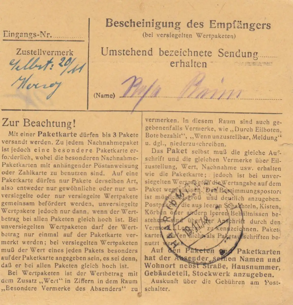 BiZone Paketkarte 1948: Ruderting nach Haar bei München