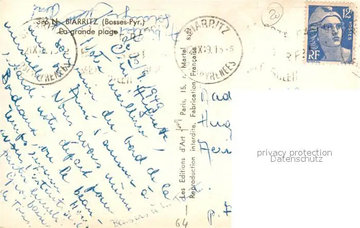 Biarritz_Pyrenees_Atlantiques Grande Plage Biarritz_Pyrenees postalisch gelaufen 1921-1965 Erhaltung siehe scans [LiesaD40] LiesID40
