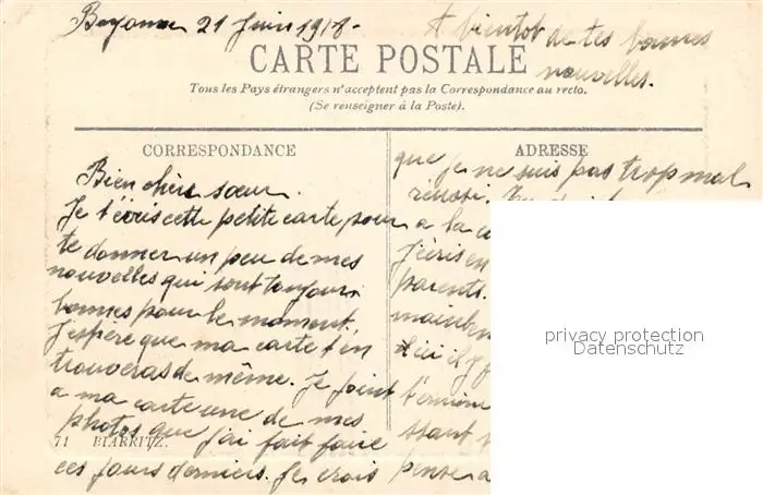Biarritz_Pyrenees_Atlantiques La Cote des Basques Biarritz_Pyrenees postalisch nicht gelaufen 1918 Erhaltung siehe scans [LiesaD40] LiesID40
