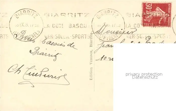Biarritz_Pyrenees_Atlantiques Plage de la Côte des Basques Biarritz_Pyrenees postalisch gelaufen 1921-1965 Erhaltung siehe scans [FriedD77] Frierer